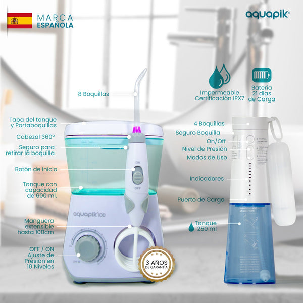 El Aquapik DUO transforma tu higiene oral con tecnología avanzada, ofreciendo comodidad y flexibilidad en cada uso.