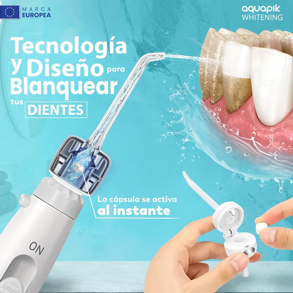 Integra el blanqueamiento dental en tu rutina diaria sin esfuerzo. Con este kit, solo necesitas una tableta y tu irrigador para resultados visibles.