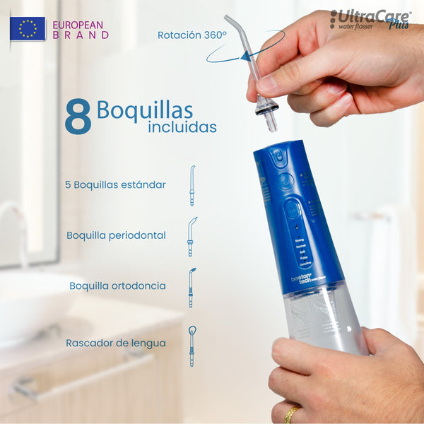 El Irrigador Dental ProCare ofrece una limpieza profunda con boquillas especializadas. Sus boquillas ortodónticas y periodontales garantizan una higiene bucal completa, eliminando residuos y bacterias de manera eficiente.